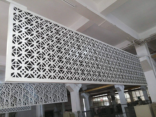 艺术雕花铝板采用电能数控冲压设备,精选优质的金属材料,以不同规格或花款的冲孔工艺来美化金属板面,能舒缓由于封闭式所造成的的压抑感,若隐若现,开阔视野空间感强。其超长冲孔板可达6米以上。